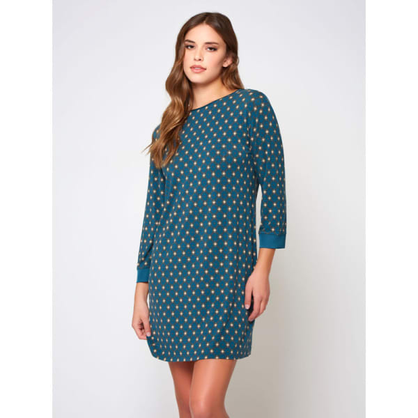 Viscose print knit sleep shirt with tie back and deep V open back. Material: 95% Viscose 5%Spandex