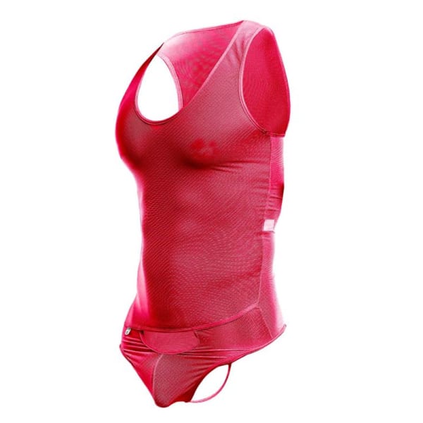The MOB Erotic wear Sexy Body Tulle Black is advertised as underwear but looks so good you could wear it for a night on the town causing heads to turn and get envious looks from others. This body is definitely for the ultra modern man whos not afraid to strut his stuff in this exceptionally sultry, sexy body. The see through tulle material caresses the body as it clings lovingly to your every contour. The front of the body follows the traditional shape of a vest until it reaches the waistline where it continues down to encompass the whole body with only a seam differentiating the two. There is a provocative semi circular cut out to the front which just threatens to expose your assets. The back, once it reaches the waistline is attached to the front by the thong which sweeps between your cheeks, leaving the buttocks exposed. The blend of 95% nylon and 5% spandex allows for some stretch in the material whilst still holding shape. There are colours for all occasions, sheer black, sizzling red and dazzling white. They come in sizes small to medium (waist 68 85 cm/28 35) and medium to extra large (waist 86 101 cm/36 to 40)