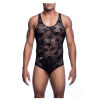 A body is not only comfortable but practical too, there is no riding up at the back when you engage in activity, so you can be sure it will stay put. The MOB Erotic wear Lacey Body takes the basic body one step further and is a super sheer stretchy lacy number that will have you dancing circles around the bedroom. This fantastically sexy body has exquisitely delicate embroidered rose design lace which hugs and caresses the contours of your body emphasising its masculine shape. The front mimics a vest top with attached trunks. The rear has a central zip for practicality and the seductive cut across the bottom of the cheeks shows just enough. The contour pouch emphasises your most precious assets whilst keeping them lifted and comfortable. The blend of 85% nylon and 15% spandex allows the material to stretch whilst still holding its shape. These have been manufactured to the highest quality and will last wash after wash. This comes only in one color, seductive black. They come in sizes small to medium (waist 68 85 cm/28 35) and medium to extra large (waist 86 101 cm/36 to 40)