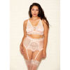 Glitter lame lace mesh 3 PC bra set with lace up velvet ribbon detail, adjustable shoulder straps, garter belt and matching g-string.