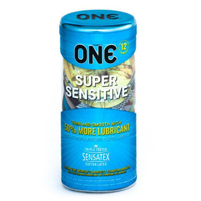 ONE Super Sensitive features exceptionally soft, sheer latex with 50% more lubricant than our standard condom. All ONE Condoms feature Sensatex ultra-soft latex for a more natural pleasure feeling. Super Sensitive is one of the first condom styles FDA approved for anal sex!
