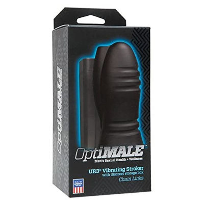 This is no ordinary stroker! The OptiMale Vibrating Stroker Chain Links offers a plush internal texture for an amazing lifelike feel. The single hole creates a tight, natural suction around your cock. Increase your pleasure with the powerful 10- function vibrating bullet that will deliver incredible humming sensations. Made of ULTRASKYN, this discreet masturbator warms in your hands, is easy to clean, and includes a sturdy yet sleek black box for travel and convenient storage. Proudly Made in America. Also available in two other distinct textures: Thick Ribs and Massage Beads