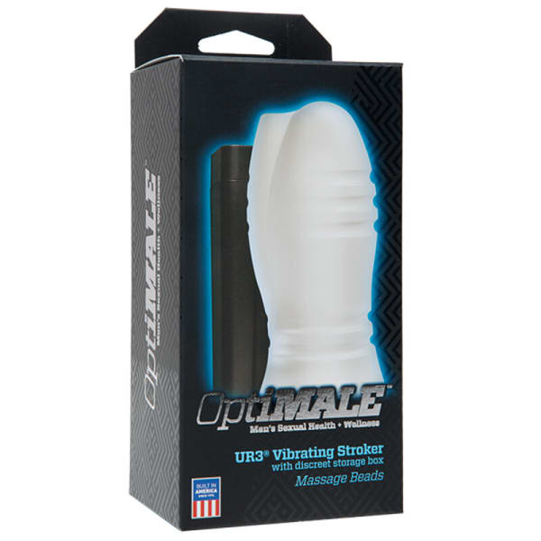 This is no ordinary stroker! The OptiMale Vibrating Stroker Massage Beads offers plush stimulating nubs for an amazing lifelike feel. The single hole creates a tight, natural suction around your cock. Increase your pleasure with the powerful 10- function vibrating bullet that will deliver incredible humming sensations. Made of ULTRASKYN, this discreet masturbator warms in your hands, is easy to clean, and includes a sturdy yet sleek black box for travel and convenient storage.
