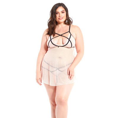 Dot mesh soft cup lace babydoll with cross front, keyhole back and match panty.