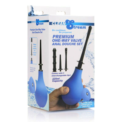 Take your pick between three nozzles with this versatile enema set! This all-in-one anal douche kit gives you options for rinsing out in order to provide you with comfort, convenience, and cleanliness! A one-way valve reduces messy backflow to ensure that you have a pleasant experience. The soft, Easy Grip Bulb holds up to 225 ML of liquid, a perfect amount whether you are cleaning out for health or pleasure! The small tip is smooth, narrow, and tapered for easy insertion. The medium tip is longer, with sideways pointing holes for a deep, thorough cleanse. The largest tip is textured with four bulbs to provide sensation as it slips past your sphincter. All three clean easily with mild soap and water and are compatible with all types of lubricant.
