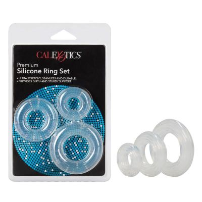 Satisfy your lover's erotic demands with the versatile Premium Silicone Ring Set. The 3-piece set comprises of medium, large and XL sized penis rings designed for increased girth and stamina support during prolonged intimate pleasure. The set is made from soft and smooth, hygienically superior silicone, for a comfortable fit and pleasurable wear. The transparent, super stretchy rings are ultra thick, totally seamless and sensually contoured to ensure maximized satisfaction. Prepare to enjoy a peak performance that goes on and on. The durable and sturdy rings offer endless possibilities to spice up your bedroom routine. Let your imagination run wild and explore fun and creative ways to wrap up your member. The easy to use enhancers are perfect for prolonged intimate encounters with your lover. To heighten sensitivity, always use a quality lube with these enhancement toys. Before and after use, clean the stretchy cock rings with a toy cleaner spray, or wash in mild soapy water.