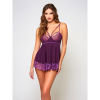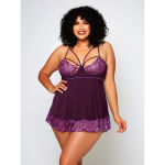 Cross dye lace and microfiber babydoll with strappy soft cups, underbust tricot lining, scallop lace trimmed, microfiber skirt and g-string. Material: 90% Nylon 10% Spandex