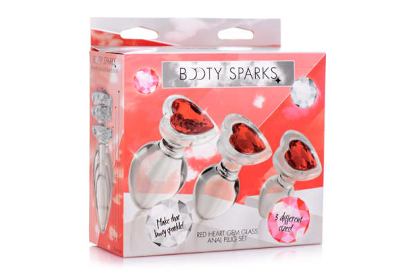 Decorate your derriere with a sparkling red heart! Choose from 3 graduated sizes to display your love between your cheeks with these see-through glass butt plugs - the solid mass and smooth surface fills your backdoor with a satisfyingly hard sensation! Perfect for warming up or as a dedicated anal pleasure toy.