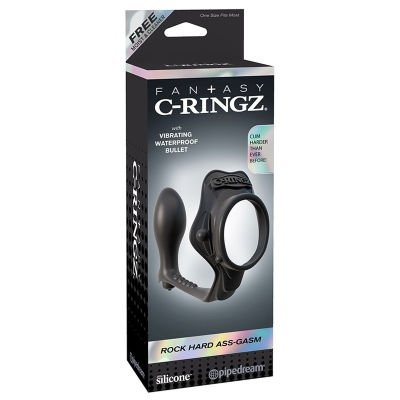 Very noticeably enhancing erection, the C-Ringz line signature Rock-Hard ring ring fits snugly around the shaft and testicles, naturally angling the penis away from the body for a big, impressive bulge. Once in place, the curvy prostate plug can be placed into the anal opening and positioned as desired- activate a single speed of powerful vibration with just a touch of the removable bullet vibe's button. During sex or otherwise, the deeply placed bulb will inexorably massage the prostate and sensitive surrounding areas as the ring tugs tantalizingly with movement.