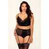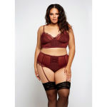 Striped mesh and eyelash lace 2 PC set with hook and eye closure, velvet trim and lace up front high waisted panty.