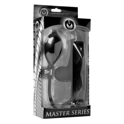 This inflatable dildo gag is sure to keep your plaything in pleasured silence with its expandable penis head shaped gag, and comfortable leather head straps. The gag is inflated by means of a pressure bulb, easily pumped by hand. To deflate, just turn the pressure dial for a quick release. This devious piece is held in place by adjustable leather straps, secured by a buckle that accepts any small standard lock if you wish to secure them further. The gag itself is made of odorless, tasteless, phthalate-free silicone.
