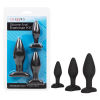 This silicone anal exerciser kit comes with a set of three plugs that gradually increase in size. This kit will help you get accustomed to the feeling of anal play and also help you work your way up gradually so that you can have anal sex comfortably. These plugs are made of a silky smooth silicone and have a nice flared base so there are no slips. Use with a quality water based lubricant for maximum comfort. Don't forget to grab a toy cleaner to keep your toys clean and like new.