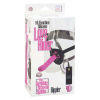 The complete strap-on system features a premium, solid, rippled silky Silicone probe with reverberating vibrations throughout.