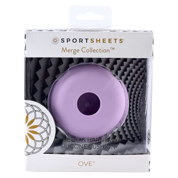 The Sportsheets Merge Collection's Ove Dildo and Harness Cushion is a smooth Silicone sleeve that stretches easily over the base of dildos measuring 2 inches to 3.75 inches. The squishy, lavender cushion helps stabilize your dildo, enhances comfort for the harness wearer and reduces pubic bruising. The circular shaped Ove can be paired with O-Ring and Underwear style harnesses to add extra cushion during thrusting. It is the perfect cushion for all your pushing! Use with Strap-Ons, underwear harnesses, interchangeable O-Rings and dildos with 2 inches to 3.75 inches bases.