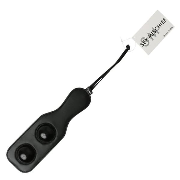 With the Shadow Paddle's you have two different toys in one. The patent leather looking half-spheres create dual impact points for maximum effect, the other side is smooth for caressing or more tender spanking.