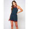 Zebra patterned halter romper with lace detail and bow accent. Material: 95% Viscose 5%Spandex