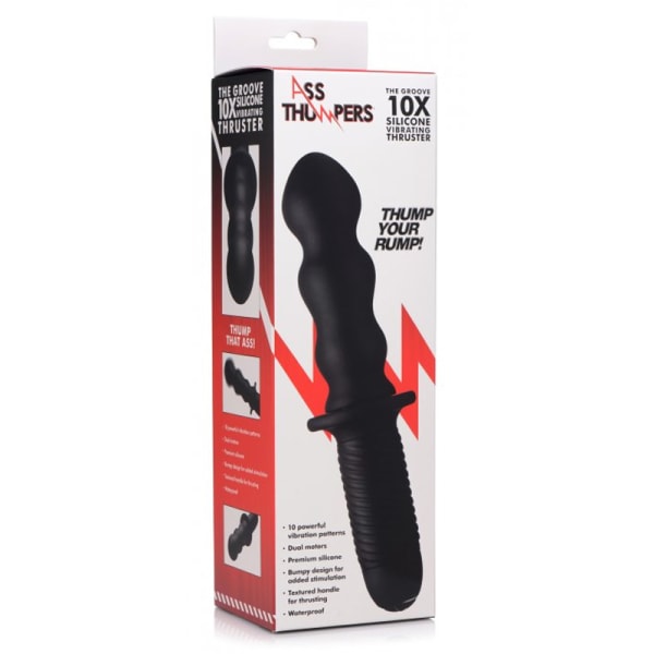 Each of the three bulging bulbs will fill you with buzzing girth as you push this throbbing thruster deeper and deeper inside! Grab hold of the textured hilt and plunge this silky-smooth, silicone dildo into your hole to experience 10 powerful vibration settings. With the push of a button at the base of the handle, cycle through 3 intensities and 7 pulsation patterns that will blow your mind as they rattle your insides. This pleasure tool is also waterproof, making it perfect for steamy shower sessions or private pool parties. Made of premium silicone, this vibrating thruster is non-porous, phthalate-free, and easy to sanitize with mild soap and warm water. Avoid use with silicone lubricants.