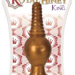 Give your anus the royal treatment with a uniquely shaped butt plug that stimulates with bold ribbing and a smooth bulb! This opulently double-textured anal accessory features a wide, flared suction cup base that stays firmly in place. Enjoy a multitude of sensations from the easy-to-insert tapered tip, the 10 bulging ridges, and the enormous, stretching bulb. Made of enhanced PVC, this plug is durable, pliable, low maintenance, and easy to clean with toy cleaner. Use with water-based lubricant.