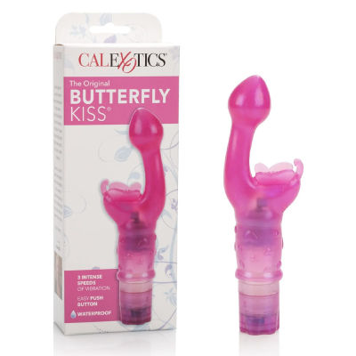 The Butterfly Kiss is a dual stimulating vibrator that will flutter on your clitoris and caress your G spot. The shaft of the Butterfly kiss has a bulbous head for covering more surface area when it comes to your G spot. The shaft of this toy is incredibly flexible so you can bend and tease yourself just the way you life. Made of soft rubber material its comfortable to use and glides wonderfully with water based lubricant. This vibrator has multi-speed vibrations allowing you to expertly control the intensity you crave. Requires 2 AAA batteries (not included)