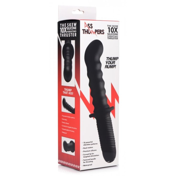 With every thrust, the dramatically curved tip of this vibrating shaft will hit the spot while every bold ripple massages your insides! Grab hold of the textured hilt and plunge this silky-smooth, silicone dildo into your hole to experience 10 powerful vibration settings. With the push of a button at the base of the handle, cycle through 3 intensities and 7 pulsation patterns that will blow your mind as they rattle your insides. This rechargeable tool is also waterproof, making it perfect for steamy shower sessions or private pool parties. Made of premium silicone, this vibrating thruster is non-porous, phthalate-free, and easy to sanitize with mild soap and warm water. Avoid use with silicone lubricants.