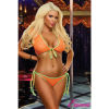 From the Magic Silk Exposed collection, this style includes: A tie front cropped top with contrasting trim and cap sleeves. Matching tie side brief featuring a ruched seam in the back.