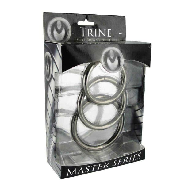 Simple in form, yet intended to be worn with purpose. These steel cock rings are as elegant as they are strict. There is no give here! Simply slip a Trine over the penis like a halo, encircling the scrotum for a supremely snug fit. Revel in the pleasure! The Trine Steel Rings can also be used to fit most harness systems.