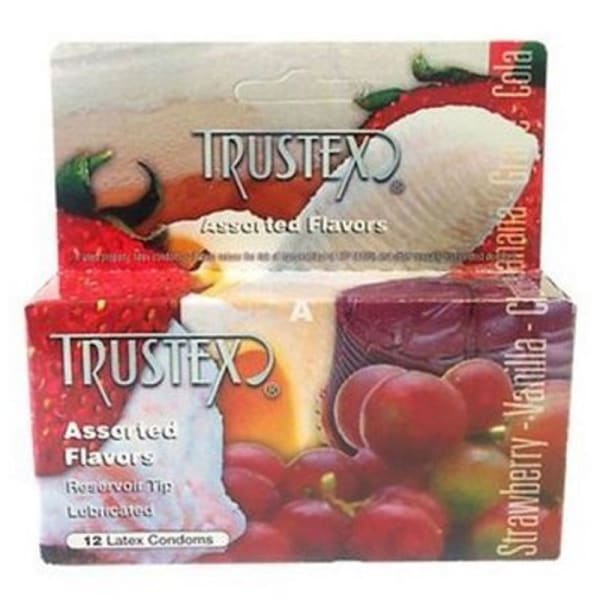Not a fan of the scent of latex condoms or the taste that comes with it? Spice things up with Trustex Assorted Flavoured Condoms! Say good. Bye to boring condoms and hello to a world of strawberry and mint goodness. These flavoured condoms are perfect for oral play, providing protection against STDs while avoiding that unpleasant latex smell and taste. Take your pick from six delicious options: vanilla, strawberry, banana, chocolate, cola, and grape. No added sugar either.