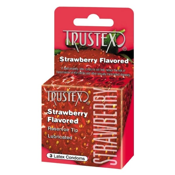The smell of latex condoms is no perfume, and the taste isn't ideal, so add some flavor to your life with Trustex Flavored Condoms. Flavored condoms are ideal for oral sex, protecting against STDs without that nasty latex taste and smell. Instead, you have the sweet, sugar free flavour of strawberry to make the moment more pleasurable! Pack of 3.