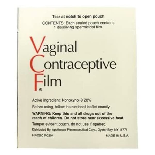 Recommended by over 6,000 clinics nationwide, the VCF Contraceptive Film is the only dissolving film that has been proven to last up to 3 hours. This is the #1 film recommended by OB/GYNs, nurse practitioners and health professionals. It is safe, effective and easy to use. This contraceptive film contains 28% nonoxynol-9.