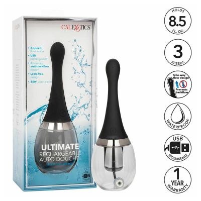 To enjoy everything the exhilarating world of anal play has to offer, you'll want to prepare to ensure total cleanliness, safety and satisfaction. Never again worry about little accidents spoiling the mood, instead, allow the Ultimate Rechargeable Auto Douche to give you a superior cleaning experience. This fully automatic cleaning system includes an advanced anti-backflow design made for a deep cleansing like no other. The powerful cleanser system is complete with 3-speed flow modes, a 360 multi-directional spray attachment and 8.5 fl. Oz bulb.