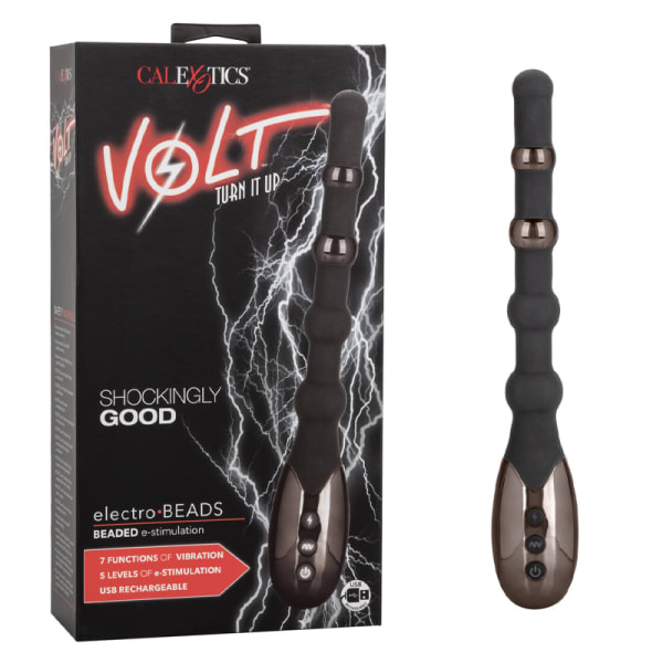 Electrify the senses with the thrilling Volt Electro-Beads. This uniquely flexible electro-stimulation beaded massager is packed with 5 independent functions of e-stim levels and 7 functions of vibration for electrifying pleasure. The slim and flexible wand can be bent into almost any position with a beaded design to deliver pulsating stimulation from any sensational angle.