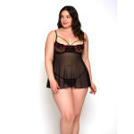 Two toned scalloped lace chemise with underwire, peek-a-boo detail and matching g-string. Material: 90% Nylon 10% Spandex