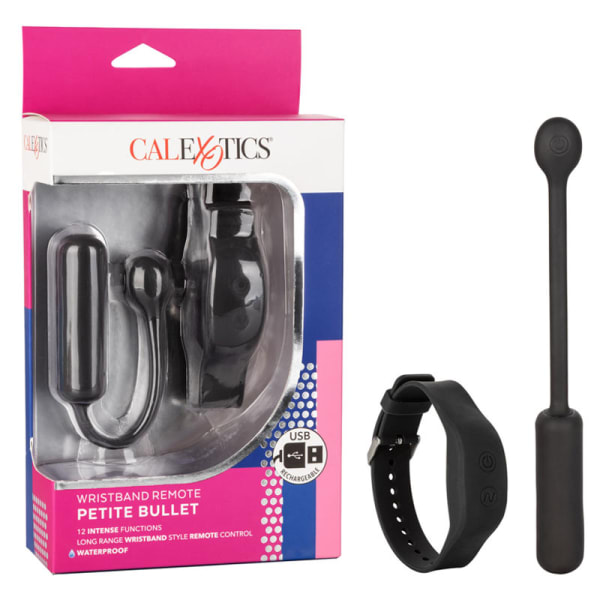 The Wristband Remote Petite Bullet is a powerfully mini vibrator paired with a playfully discreet wristband controller for adventurous pleasure seekers. The stylish, yet discreet wristband controller makes it easy for you or your lover to control vibration intensity with the touch of a button. Whenever or wherever passion takes you, this passionate panty vibrator's 32.5-foot radius range and 12 intense functions of vibration are ready for playtime.