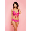 Heart mesh bow front ruffle bralette with matching crotchless ruffle back panty.