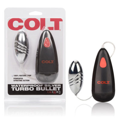 The adult toy experts at CalExotics and the male-centric pleasure innovators at Colt have partnered to create a line of sex toys dedicated to the masculine pleasure seeker. The Colt Waterproof Turbo Bullet is a silver bullet vibrator that packs powerful multi-speed vibrations into a durable, oversized package. This beginner friendly, easy-to-control bullet vibrator uses 2 intense gyration speeds to massage the sensual sweet spots for intense full body satisfaction. Embrace intense, foolproof ecstasy with this 2-speed vibrating bullet delivering thrilling stimulation. Intensely satisfying stimulation is guaranteed with this bullet sex toy and is a sublime start for couples exploring adult toy play or for an erotic solo experience. The EZ touch vibration button makes it easy to turn up the intensity to deliver frustration-free pleasure, every time. No matter how or where you use it, our extreme bullet vibrator is here for your next pleasurable experience. Don't forget to customize your bullet vibe with erotic accessories, like CalExotic's flexible bullet sleeves or ticklers, and adapt to your ever-changing tastes. COLT Studio Group shares its unique vision of the masculine man with the world through photographic, film, video and a wide variety of all-male products. COLT Studio Group celebrates the erotic appeal of masculinity. The most trusted name in all-male erotic products is COLT. If the Look is Masculine, the name is COLT!