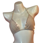 The Candyland Crystal Tri Top is designed with every woman in mind. The cups are adjustable to your preference. The high quality rhinestones are hand beaded to perfection.
