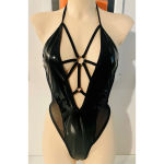 The Candyland Multifractal Bodysuit can be worn by itself or paired with a nice bottom for a daring look! Featuring an adjustable neck tie, mesh inserts, ring details and high leg Brazilian cut. This wet look vinyl bodysuit is available in our delicious candy colors.