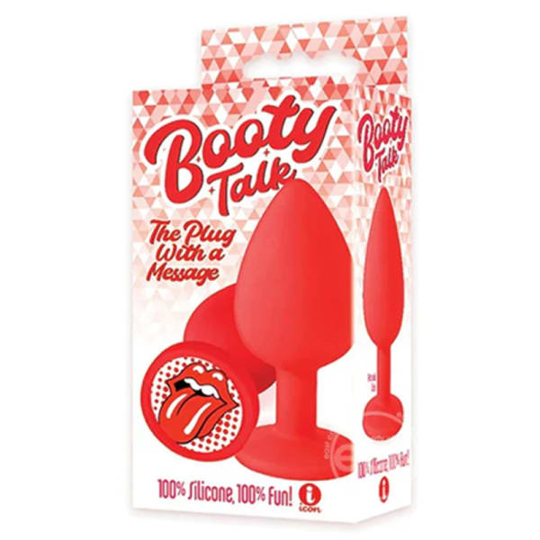 Ever heard of a €œmessage in a bottle?€� How about a message in a booty? It€s Icon€s "Booty Talk€� silicone butt plugs, that really say it all. Whether it€s €œBrat,€� or €œWrong Way,€� or a neon pot leaf, or that famous rockin€ tongue, Booty Talk does all the talking€¦you just bend over :-)