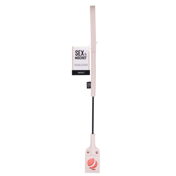 Prepare yourself for a playful adventure where naughty meets nice with the Peaches ‘n CreaMe Peach Impressions Crop! Crafted for those who like a bit of flirtation with their domination, this riding crop brings lighthearted silliness to every swat of your bottom! With a playful peach cutout on the looped tip, each swat delivers a delightful impression that's as sweet as a peach. The sturdy handle ensures a firm grip, while the peachy details pair perfectly to your playful pursuits.