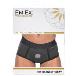 Designed for an active fit all day and all night, the Em.Ex Fit Harness allows you to be ready for a pleasure-packed experience. The interior fabric panels secure toys and provide support during play, while the soft fabric provides a comfortable stretch. With its durable elastic waistband and nitrile (rubber) “O” Ring, you can keep all your favorite accessories firmly in place. Two bullet pockets give the option of added stimulation during play or on the go. This harness is designed with fishnet for a cheeky cut that offers a flirtatious fit.