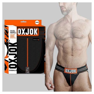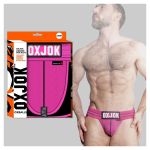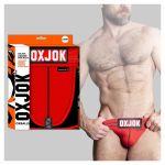 Bold 3-D rubber OXJOK on center-front plus OXBALLS pouchtag and rearview top-of-the-buttcrack OX logo are all designed to show you off front or back, includes our rubbery JOKFIT cockring and discrete BUNGEE cockring lifter inside the pouch pulls up your junk when you want more bulge