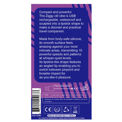 This compact, powerful, and discreet vibrator is meticulously designed to cater to your every desire with precision and care. The Ziggy is a compact and flexible powerful g spot / clitoral vibrator designed for unique personal pleasure and couples play.